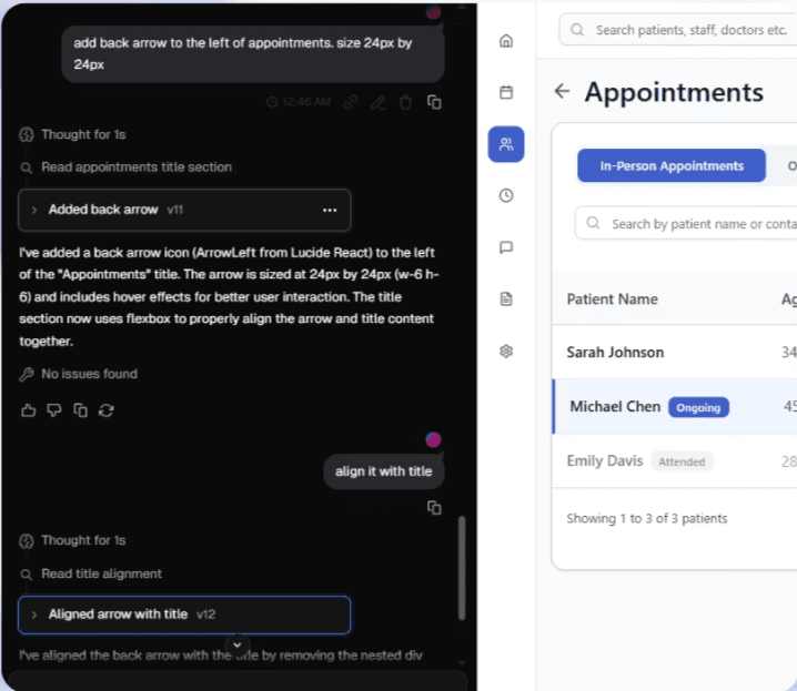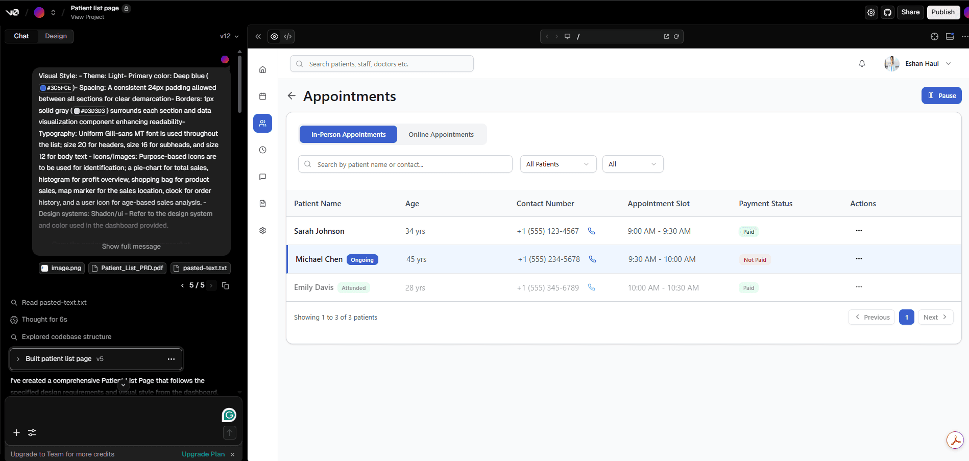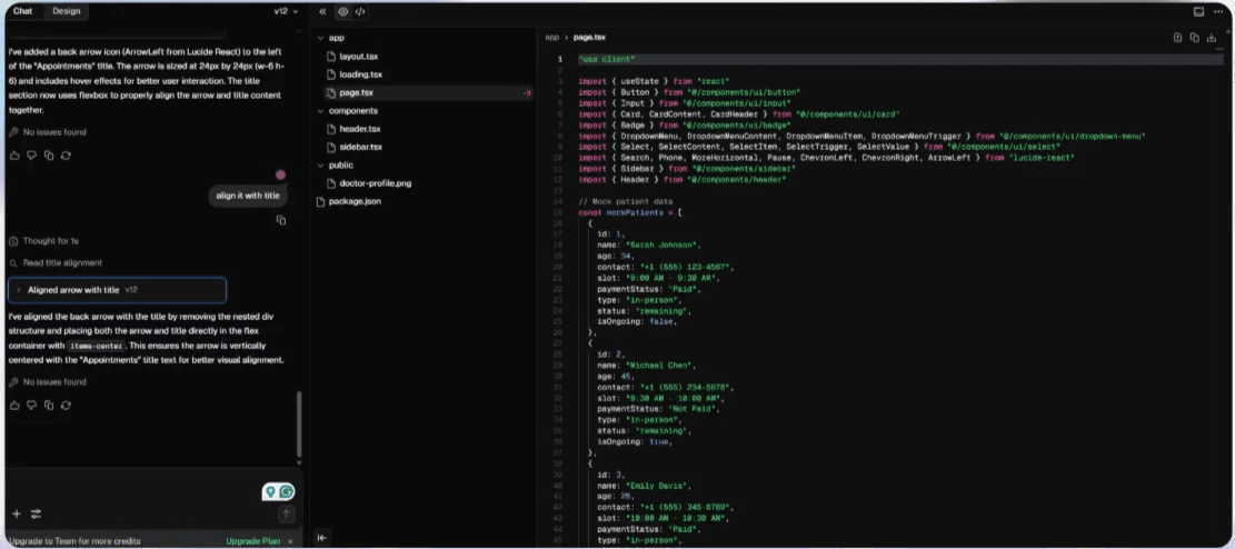 I leveraged V0- a generative AI design tool to create Patient list page.